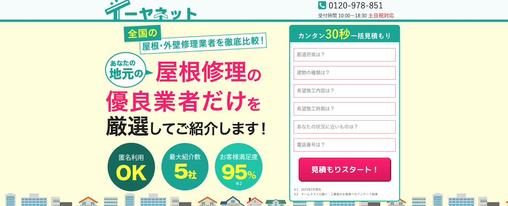 - 特徴: 日本最大級の屋根修理専門サイトで、地元の優良業者を「匿名」で一括比較できるのが魅力。